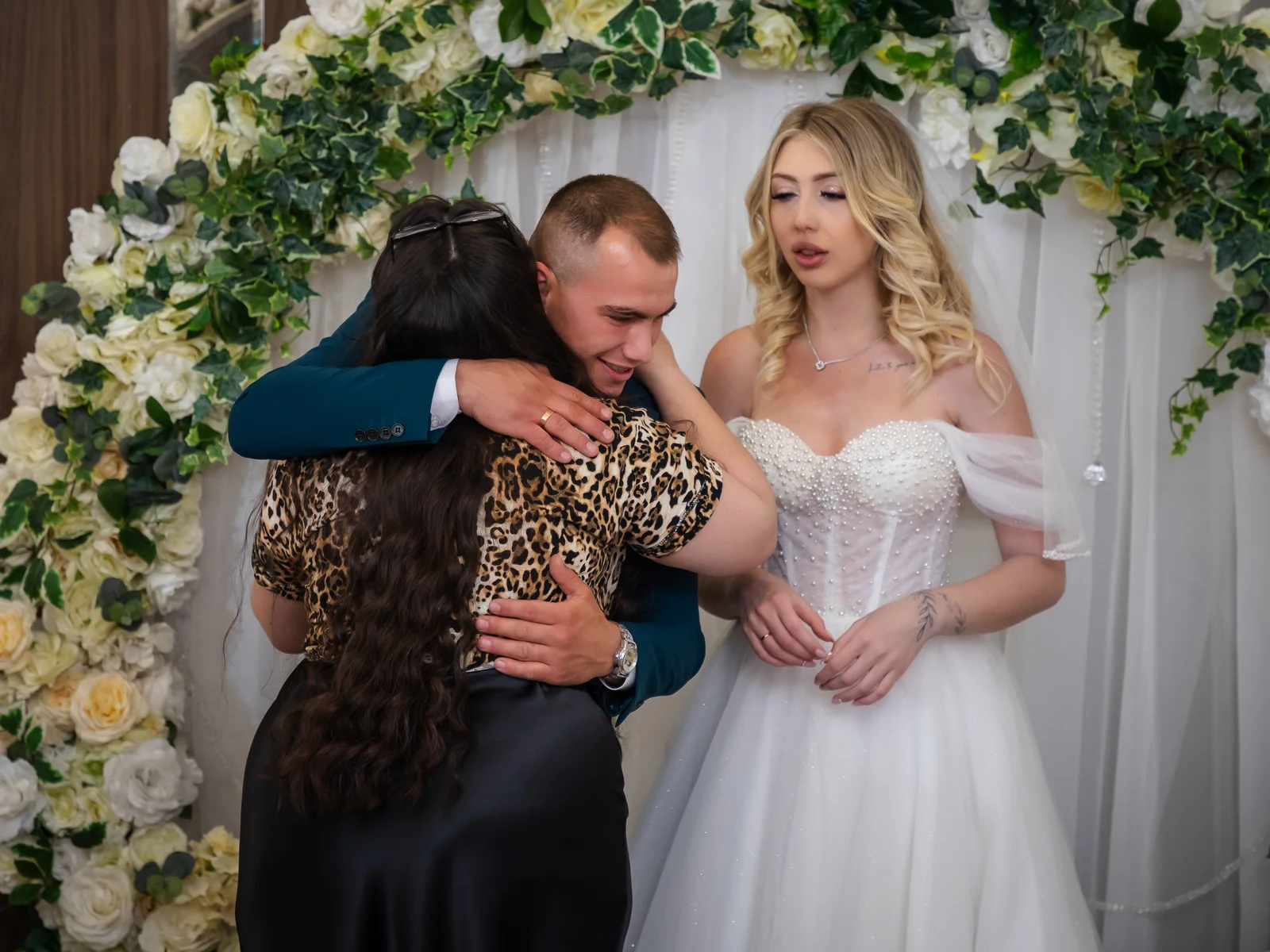 Guests welcomed the newlyweds with warm hugs, and glasses were filled with champagne as a sign of joy and happiness.